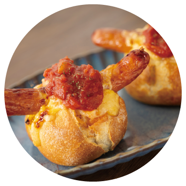 チーズ×カレー×トマトの相性抜群ドッグ。米粉入りパンは外はふんわり中はもっちり♪
