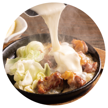 熱々の鉄板でチーズがトロトロ!お酒もごはんもすすむ地鶏の旨みとチーズの風味。