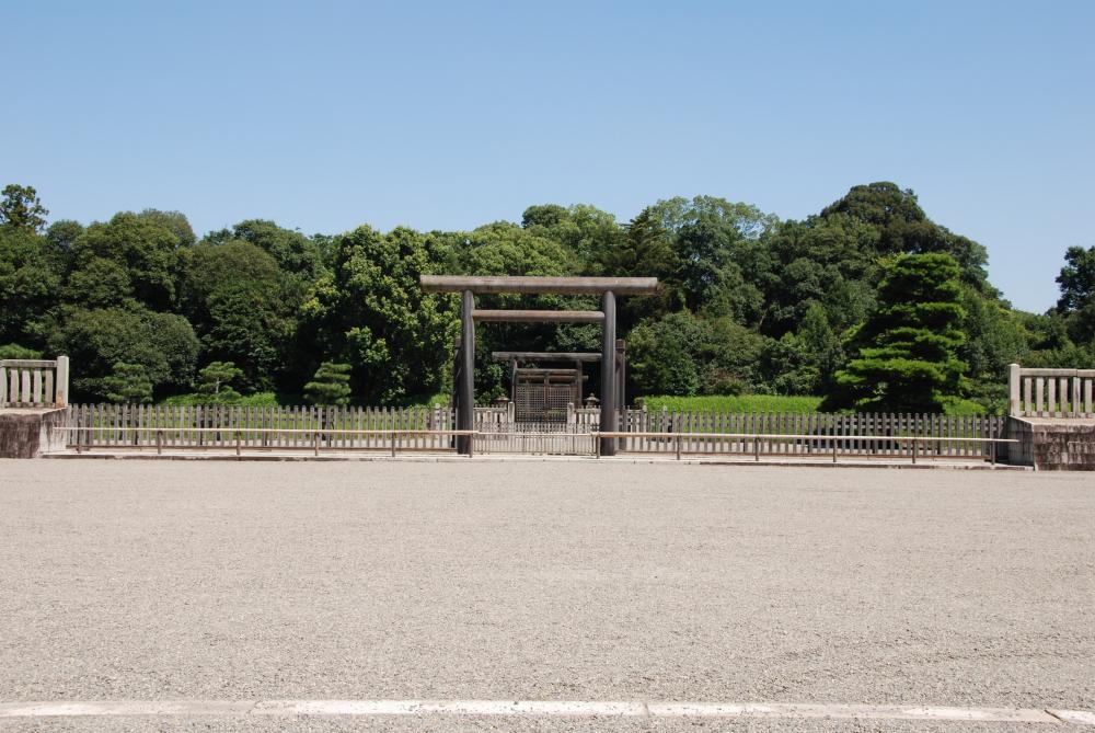 橿原神宮の北隣にある、神武天皇が眠る御陵。橿原神宮から訪れる際は北神門を抜けて北参道を進むのがおすすめです。