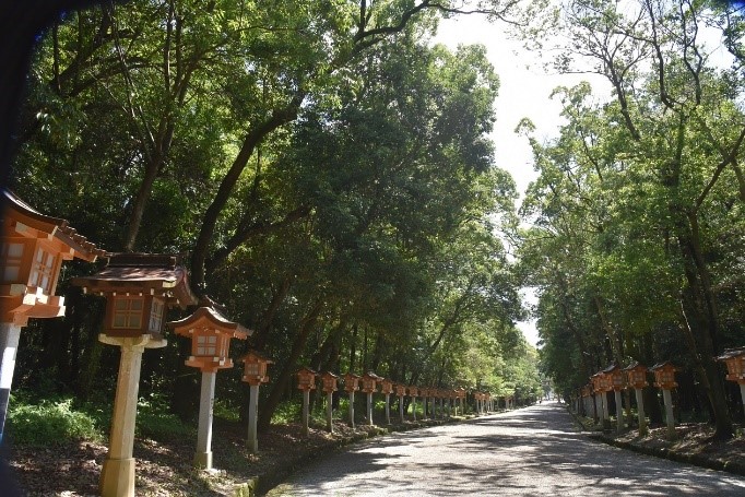 外拝殿で参拝をしたら、木漏れ日が降り注ぐ北参道へ。凛とした空気に包まれた参道を歩けば、自然と背筋が伸びるよう。時間に余裕があれば森林遊苑をゆっくり散策して、森林浴を楽しむのもおすすめです。