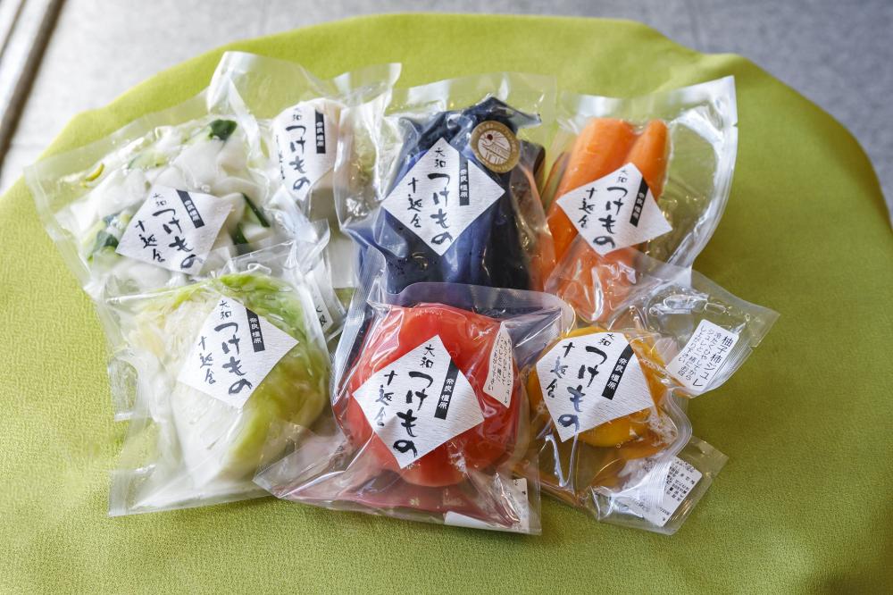 「サラダより深く、浅漬けより浅い」をテーマに、塩分控えめなお漬物を販売。店頭には王道の白菜から珍しい柿まで、多種多様な商品がいっぱいです。イチオシは、橿原ブランドにも認定している「茄子うま味」。