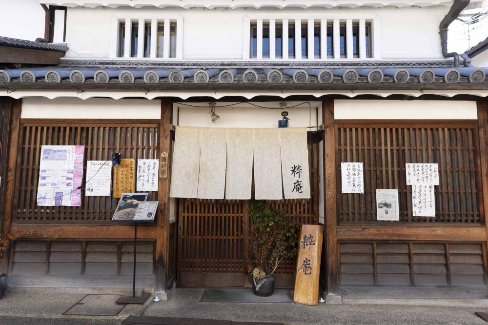 風情ある町並みが残る「今井町」に位置する人気の蕎麦屋。店主が毎朝打つ蕎麦は細めで風味も豊か。地元の常連さんも多く、お昼は早めに訪れるのが正解です。メニューの中には、河合酒造の出世男がセットになったお得な「粋庵セット」もありますよ。